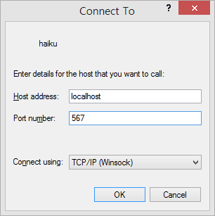 Change the host address to “localhost” and change the port number to “567”, click again.