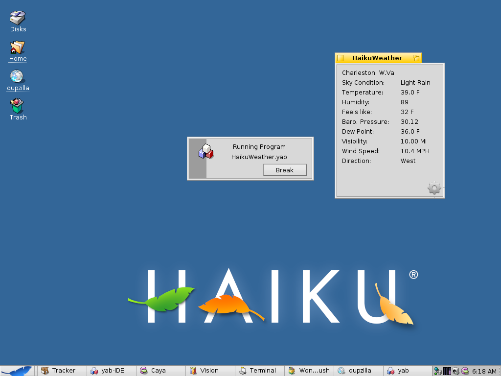 I got a good way into replicating BWeather in yab anyhow, just no idea how to create the deskbar replicant now..